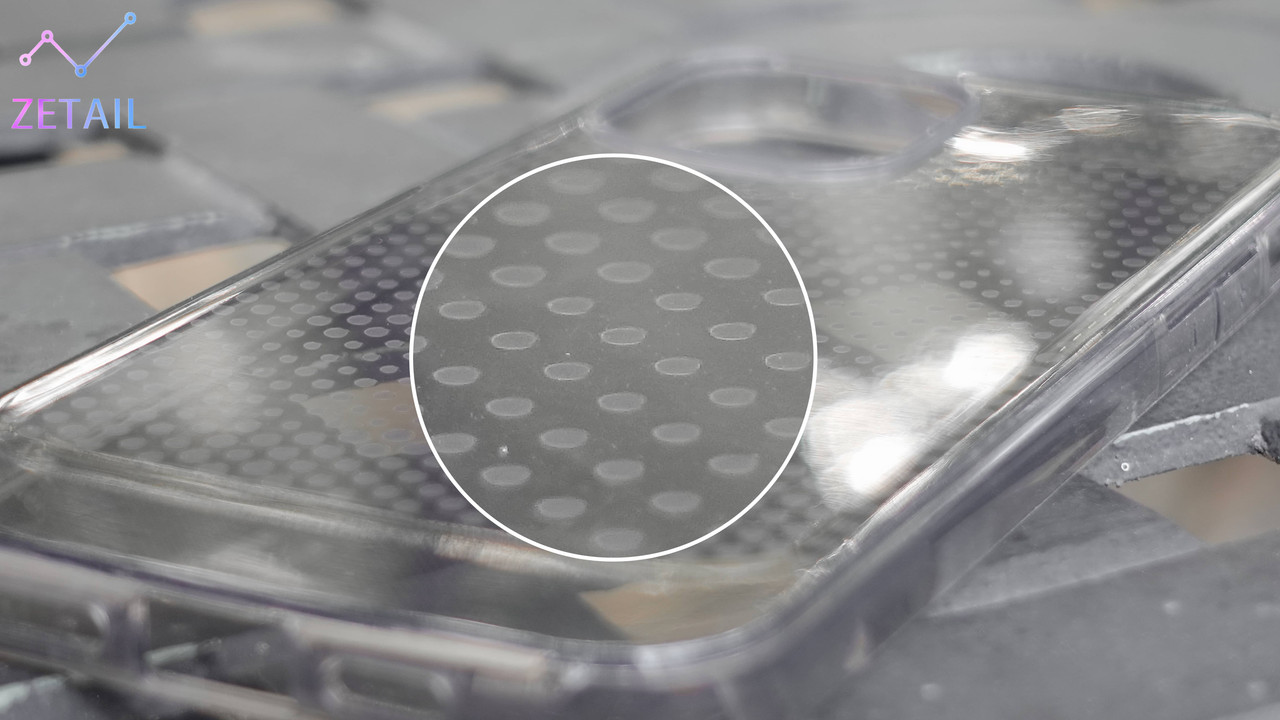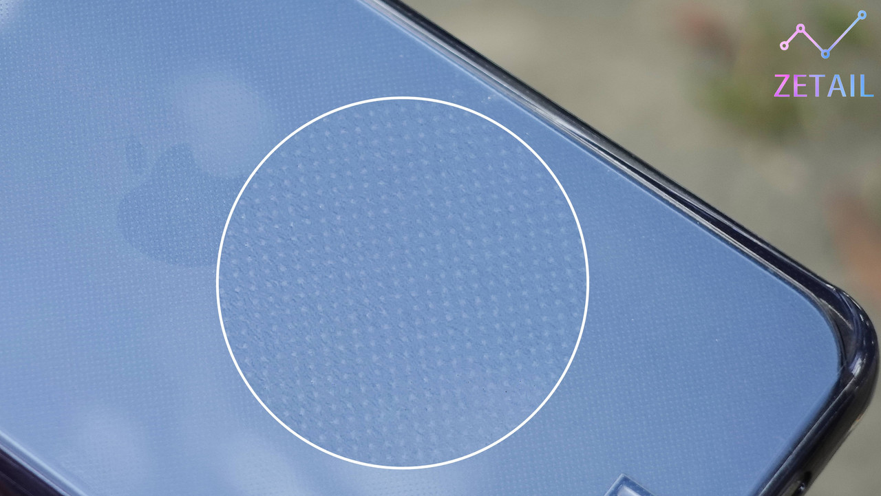 ▲ 不過仔細看會看到上面有非常多小小的點陣紋路,讓 Mouve 不會像一般透明保護殼一樣容易沾指紋。