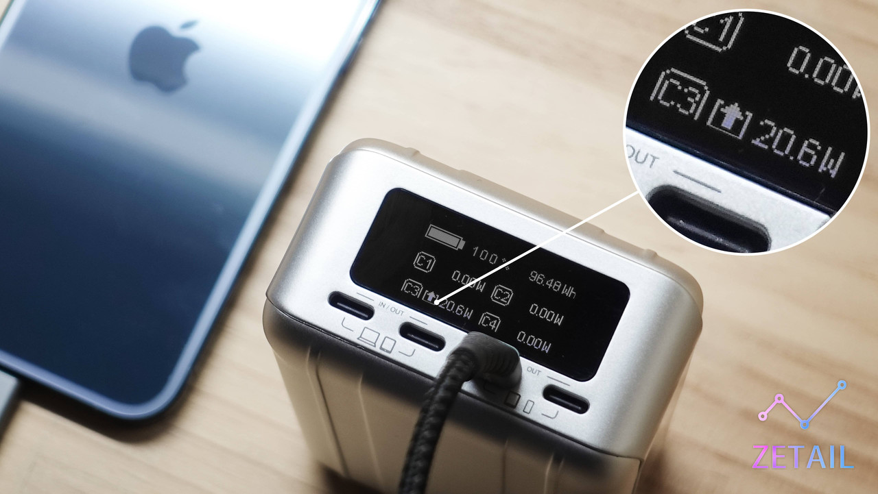 充電插槽:兩個 USB Type-C(輸入 / 輸出)、兩個 USB Type-C(輸出)