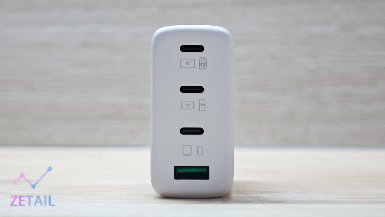 ▲ SuperPort S4 共有三個 USB-C 充電插槽(上面兩個的最大輸出功率都是 100W)、一個 USB-A 插槽。