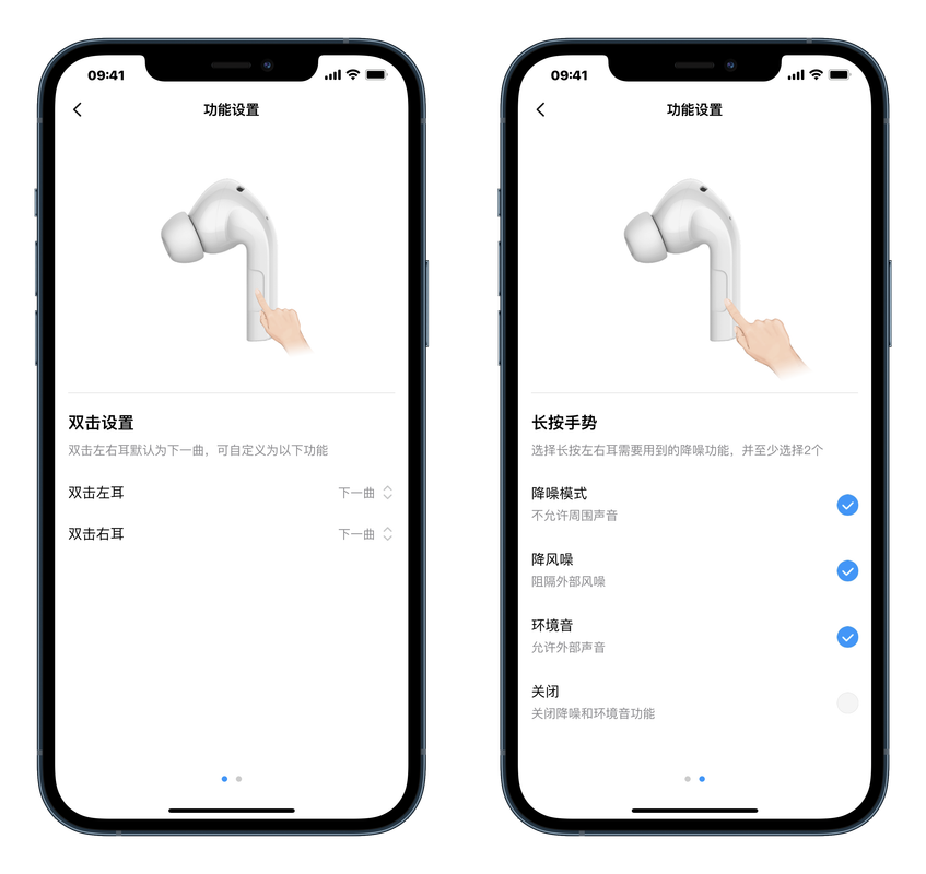 - 用力長按左耳:切換降噪模式