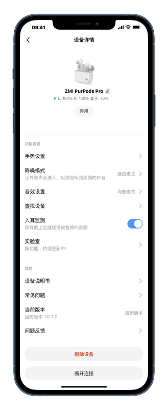▲ 連線成功之後會看到這個頁面,PurPods Pro 所有可以自定義設定的功能都在這邊了。