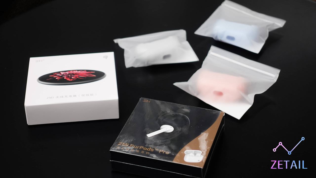▲ ZETAIL 要抽出的獎品,包含一組 PurPods Pro、三種顏色的矽膠保護套、ZMI 無線充電器綻放版,都是全新未拆封。