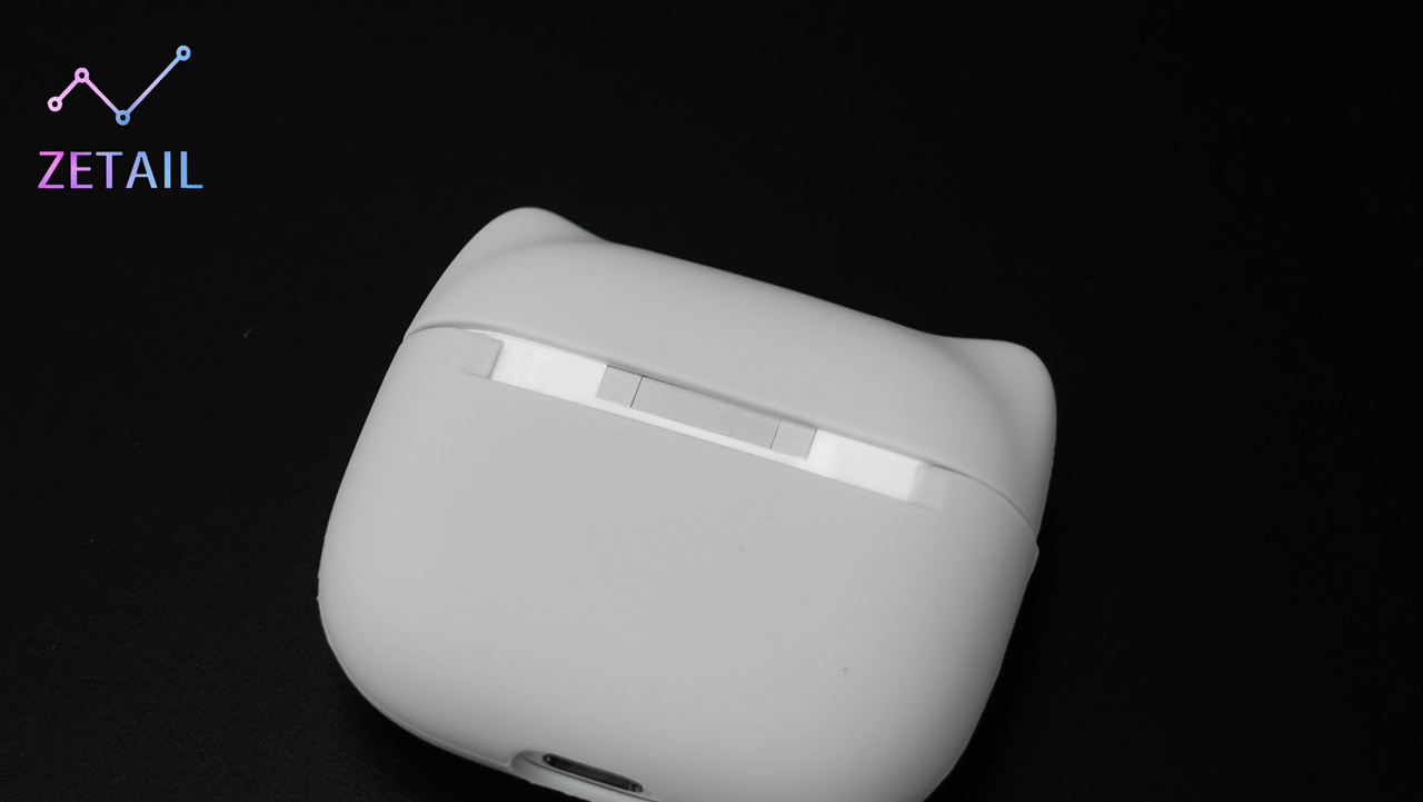 ▲ 從上面的特寫照片可以看到,PurPods Pro 充電盒的正面和四周相鄰側面有生硬的過渡,這是為了放實體按鍵。
