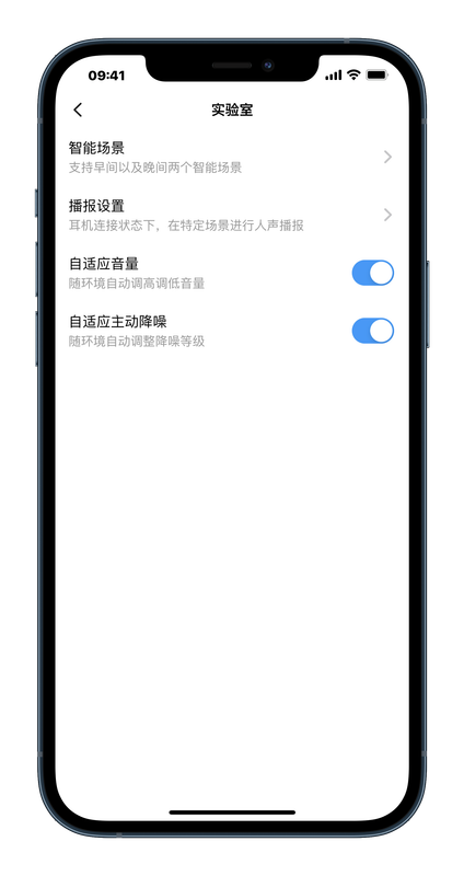▲ 在「實驗室」的選單裡面,有「自適應音量」(自動調整音量)、「自適應主動降噪」(自動調整降噪),不過開啟後都沒有作用,不曉得是否和我使用的是 iPhone 有關。