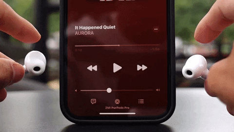 ▲ PurPods Pro 的「入、離耳偵測」非常靈敏,不過需要拿下兩邊耳機才會暫停音訊。