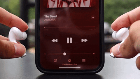 功能面是 ZMI PurPods Pro 大放異彩的部分,它搭載「入、離耳偵測」功能,當拿下耳機時,音訊就會自動暫停;再戴上耳機,音訊又會繼續播放,非常方便。PurPods Pro 使用的是電容感應器,所以跟 EarFun Air 一樣,從外觀看不到感應器(實際上整個腔體都是感應器),只有接觸到可導電物體時才會觸發反應,放在桌上、口袋基本上也不用擔心誤觸問題。比較可惜的是,一定要同時拿下兩邊耳機才會暫停音訊,只拿下單邊耳機沒有任何作用。